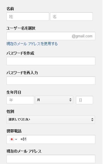 この画面の右側にある空欄の部分に、記入すれば、Googleのアカウントを作成できます。