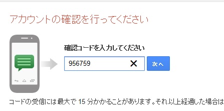 機械音声で、確認コードが知らされました。