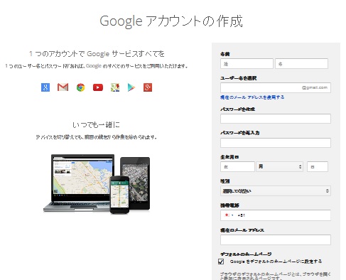 Googleのアカウント作成ページはこちらです。